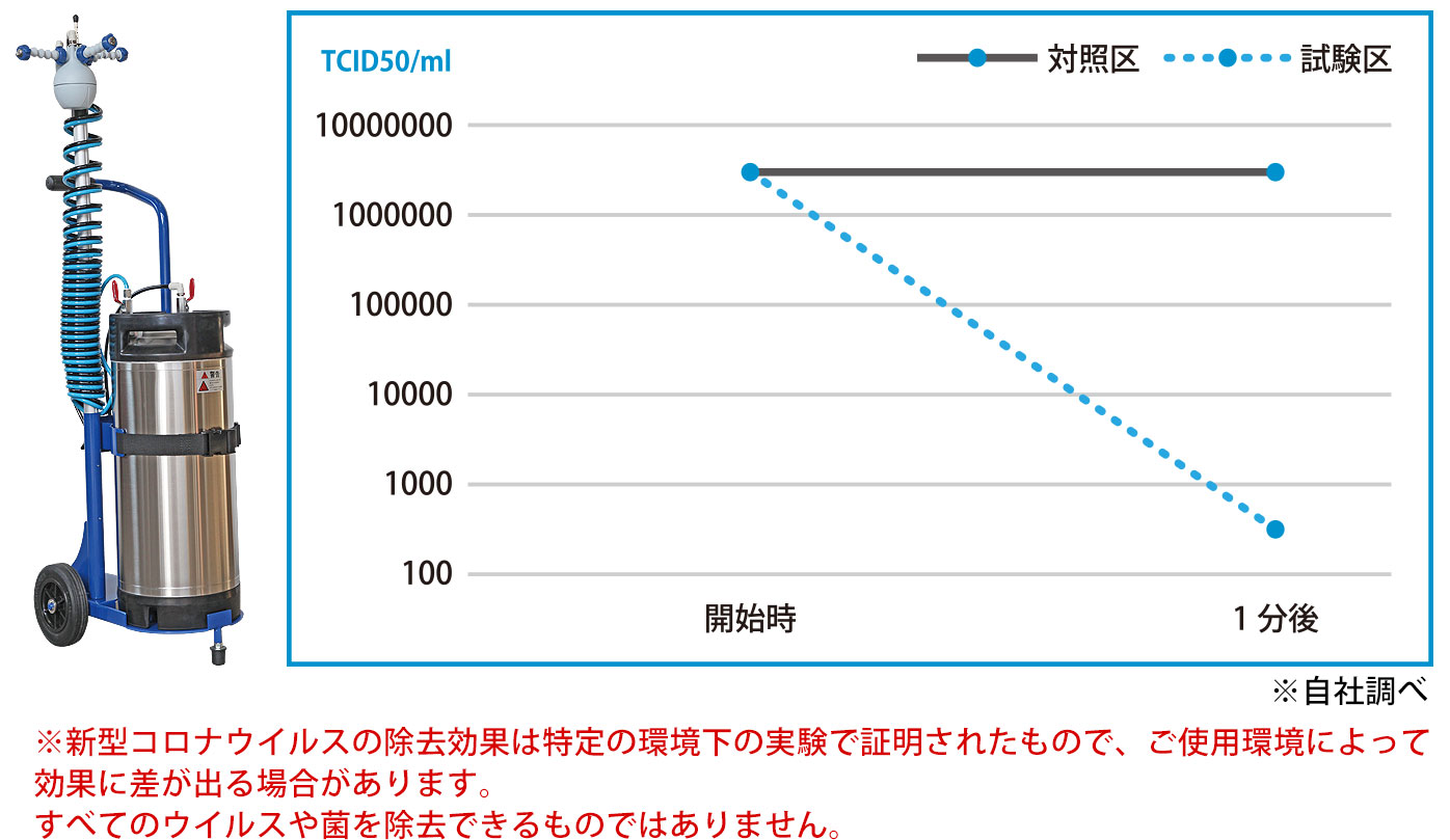 その結果、試験資料において、1分で99.99%以上の不活化効果があると判明した。
